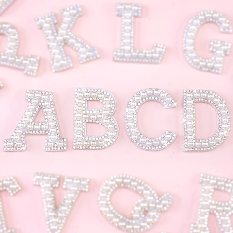 26 Stück White Pearl Strass Aufbügeln Patch PVC Alphabet Glitter für DIY Crafts Hand gefertigt a bis Z Buchstaben Bling Patch
